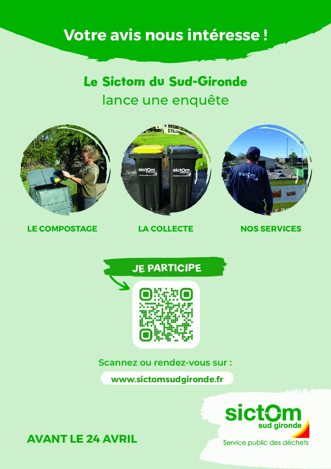 Le Sictom du Sud-Gironde réalise actuellement une enquête auprès des usagers du territoire afin de mieux connaître leurs pratiques et d’adapter ses services en matière de gestion des déchets.