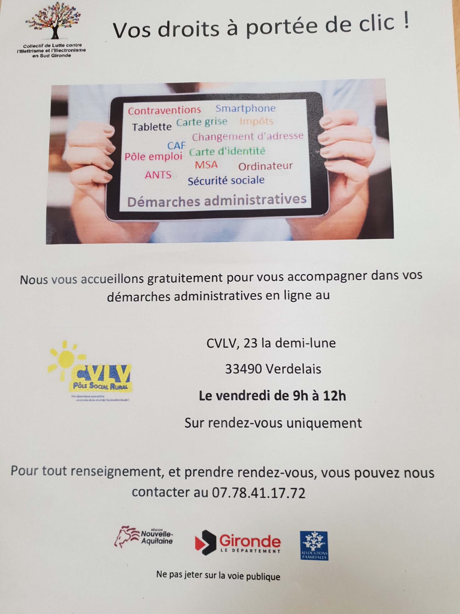 Vos DroitsLe CVLV vous accueille gratuitement pour vous accompagner dans vos démarches administratives en ligne au